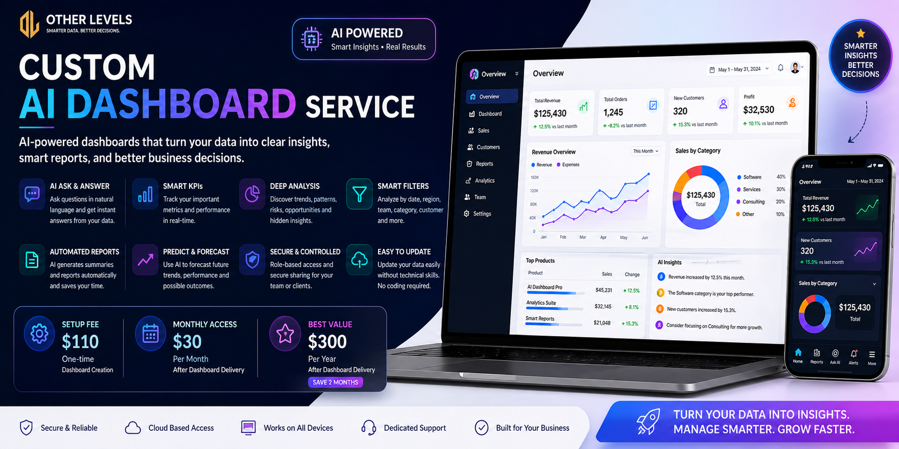 - Custom Dashboard Service – built to your dataset and branding